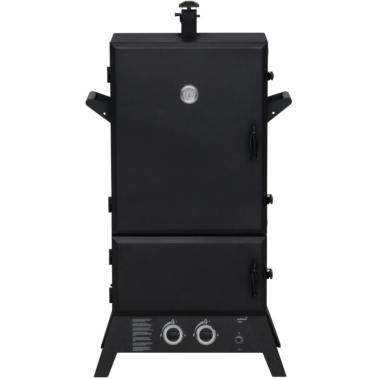 Stadiga bärhandtag underlättar flyttandet av rökugnen. Med hjälp av stängningsklaffen i skorstenen kan rökmängden i rökugnen regleras. Med termometern kan temperaturen i rökugnen kontrolleras.
