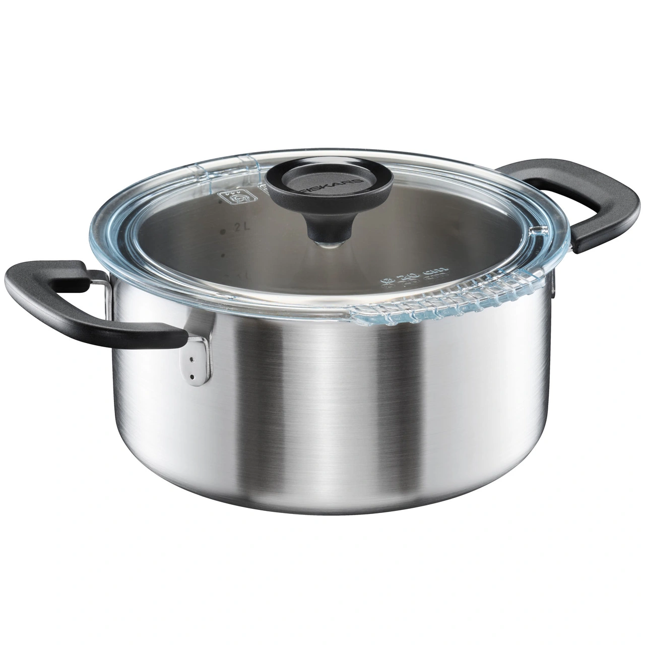 FF kastrull 3,0 L har ett smart glaslock med dubbla avhällningsfunktioner. Kropp av 90% återvunnet rostfritt stål. Tål diskmaskin. Tillverkad i Finland.