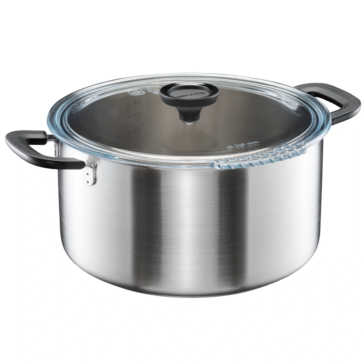 FF gryta 7 L har ett smart glaslock med dubbla avhällningsfunktioner. Kropp av 90% återvunnet rostfritt stål. Tål diskmaskin. Tillverkad i Finland.